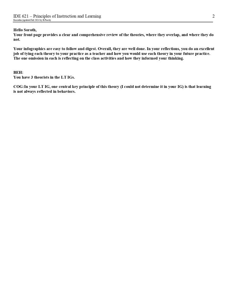 IDE 621 – Principles of Instruction and Learning